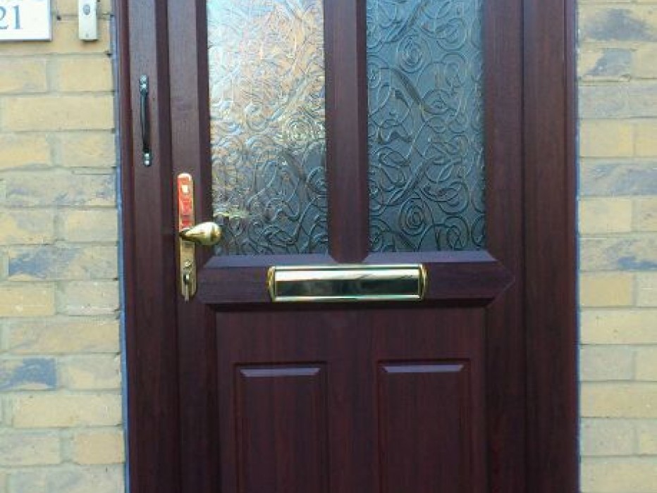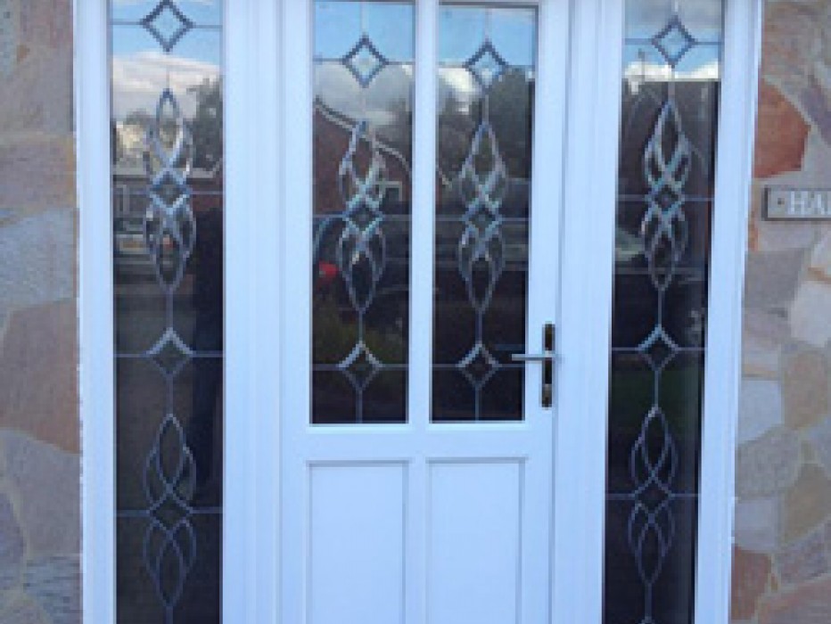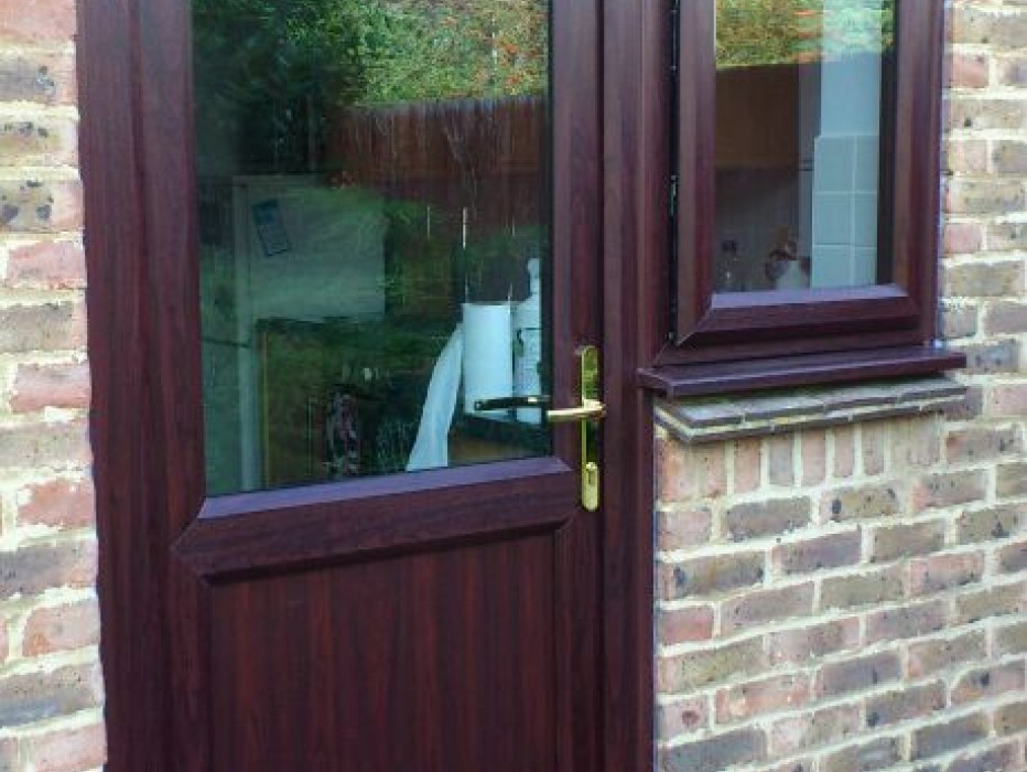 A UPVC door can come in many designs and colours. Here is a selection showing the standard back door to having welded transoms and mullions, flat panels and decorative. So much variety...